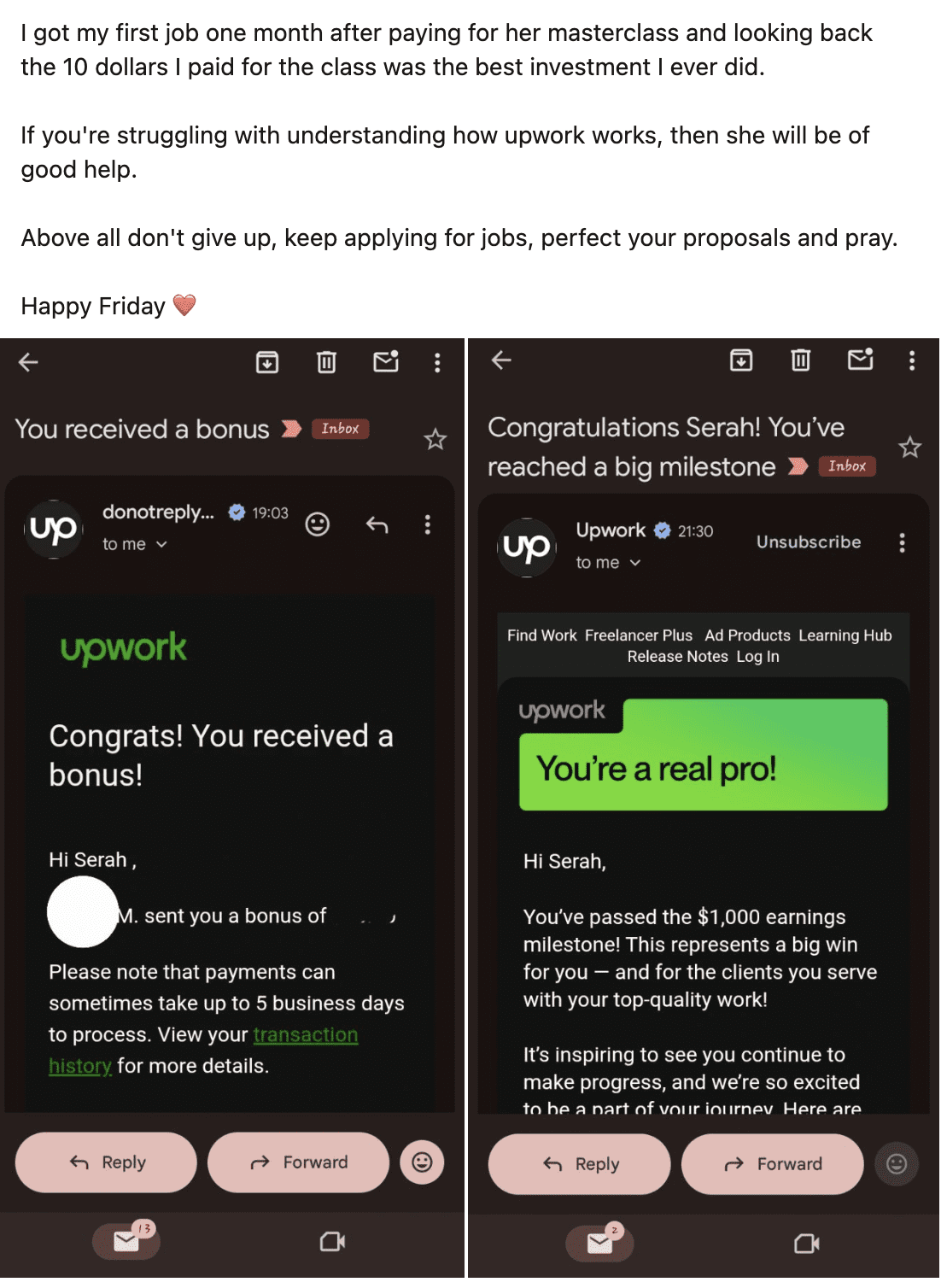 No prior Upwork success. No established profiles. They followed the same system inside these guides — and started getting interviews, offers, and paid.